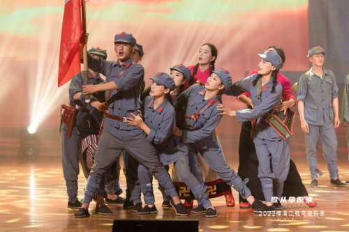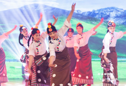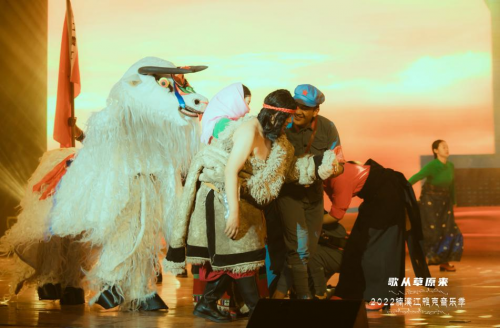 藏、汉双语演唱的歌曲《我和我的祖国》,唱出了藏族儿女感恩祖国的心声,由著名的牦牛革命为背景创作的情景歌舞《红色草原》,再现了红军长征路上爬雪山过草地的军民鱼水情。